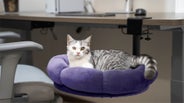 - 猫はそばが好き。でもデスク上は作業の妨げに。“デスク下”という新しい共生スペースを作りました。