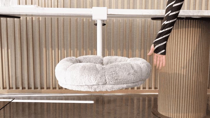 今回ご紹介するDeskPurrchは猫と一緒に過ごすための快適なツールです。デスクの下に設置して、使わない時は収めることができ、インテリアの邪魔になりません。