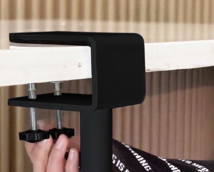 A. DeskPurrchは、厚さ7cmまでの天板に対応しています。取り付けにはC型クランプを使用し、工具なしで固定できます。