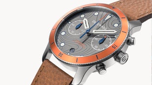 グレー文字盤の地図を表す等高線はエンボスが入る事で光の入射具合により、文字盤の凹凸や曲線が強く見えたり、緩やかに見えたりします。この模様はケースの裏側にも描かれています。