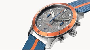 文字盤を覗くとクロノ針はブルーに統一し、剣先にオレンジをポインターとして塗ることで同色のオレンジベゼルとデザインバランスを図っています。ブルーはアクセントとしてイタリアへの憧れを感じるDETOMASOならではの差し色です。