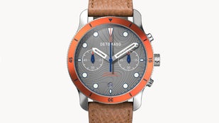 DETOMASOの全てのデザインは”ビンテージカー”と”イタリア車旅行”のコンセプトです。秒を争うクロノグラフ機能備えた時計はクラッシックカーデザインに基づいています。イタリアデザイナーによる、少しレトロですが、バンパー、燃料キャップやスピードメーターからヒントを得たケースデザインになっているのです。今回のTOPOは文字版と、裏蓋にアドベンチャーには欠かせな地図の標高と地形を示す等高線をヒントにデザインしています。