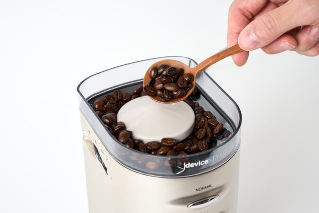 ホッパーにコーヒー豆を入れます。