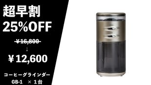 ロングセラーモデルの快適な操作性はそのままに、大きく進化。グラインダー刃の素材をセラミックからステンレスに、また形状を14枚刃から20枚刃に変更し、グラインド性能を劇的にアップさせました。挽き時間の短縮とムラのない挽き加減を実現した『コーヒーグラインダーGB-1』を新色のシャンパンゴールド色で市場に投入します。