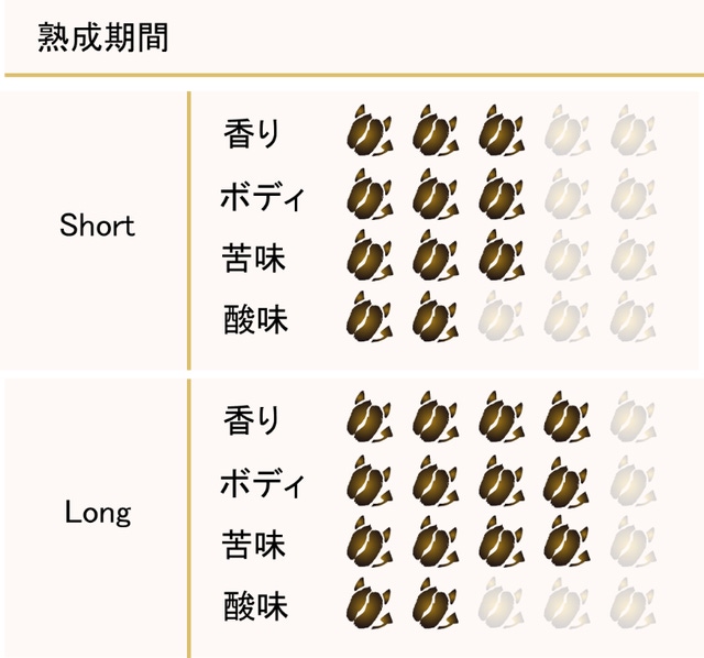 - 短期熟成豆と長期熟成豆の2種類をご用意!お好みに合わせてお選びください。