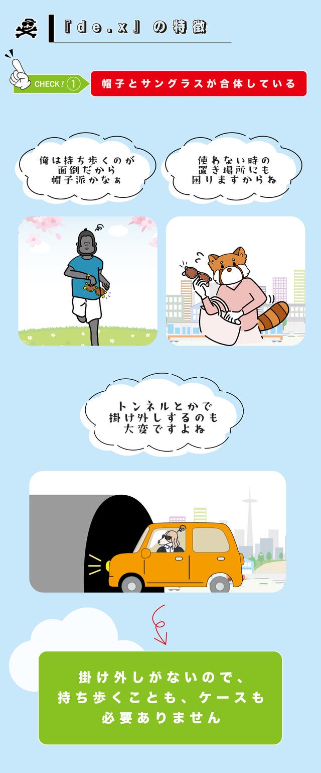 - こんなの見たことないUV対策!「帽子+サングラス」 ➡『 de.x 』