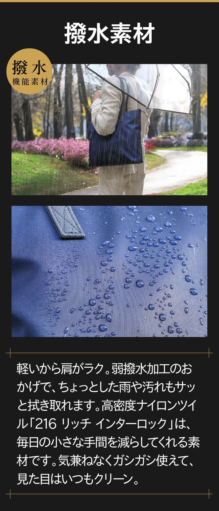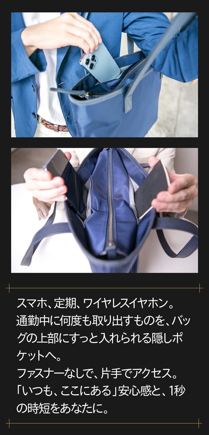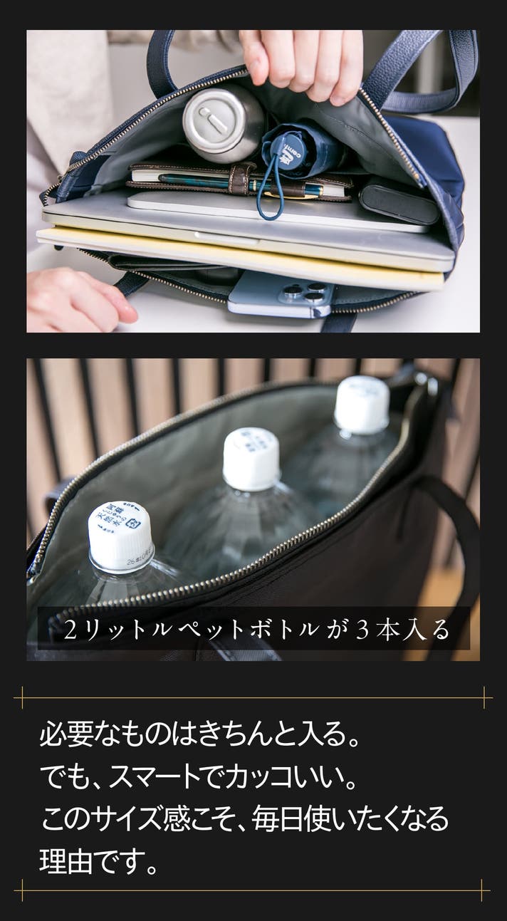 - 【全天候×時短】弱撥水ナイロンと天面フラップで雨粒から守り、電車内は膝上に収まる安心サイズです
