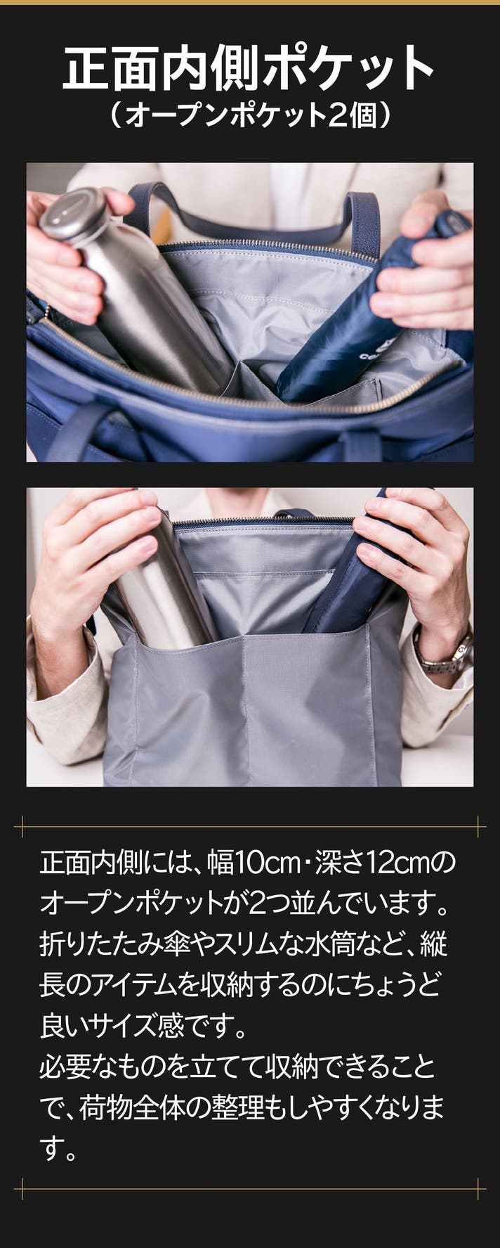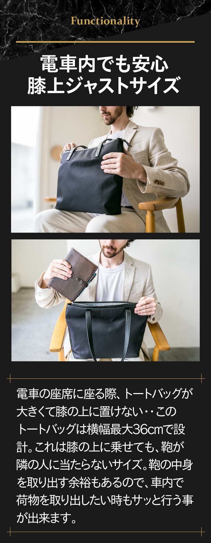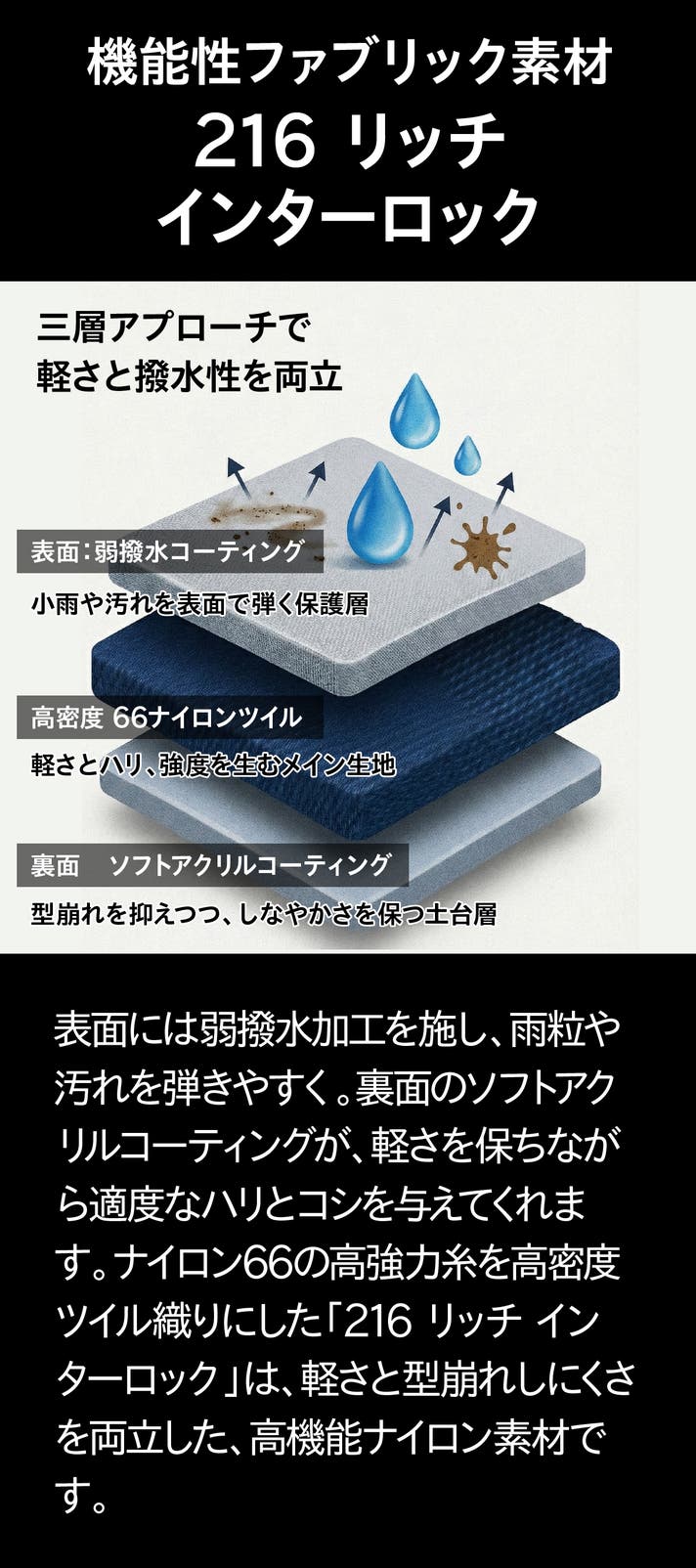 - 【全天候×時短】弱撥水ナイロンと天面フラップで雨粒から守り、電車内は膝上に収まる安心サイズです