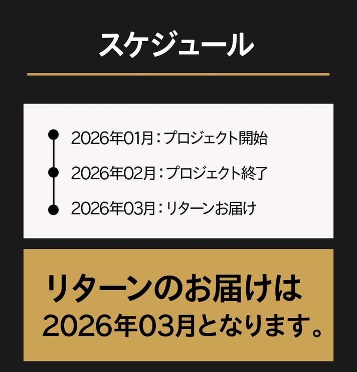 このプロジェクトはAll in型です。目標金額の達成に関わらず、プロジェクト終了日の2026年02月27日までに支払いを完了した時点で購入が成立します。