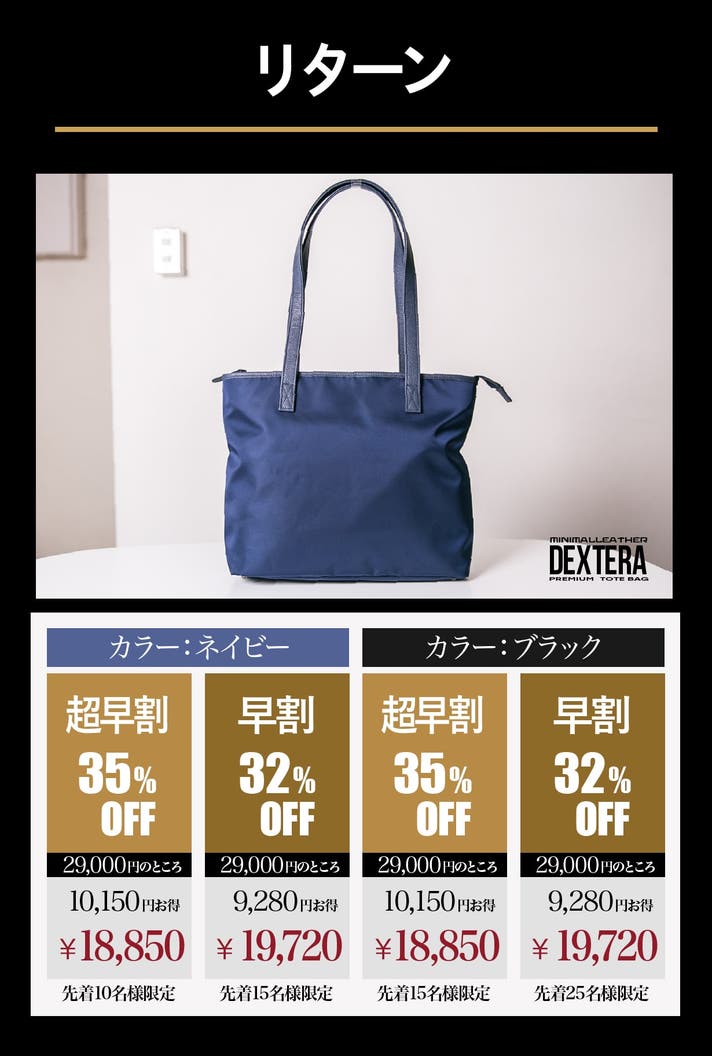 【超早割 35%OFF 】先着10名様 DEXTERA トートバッグ×1