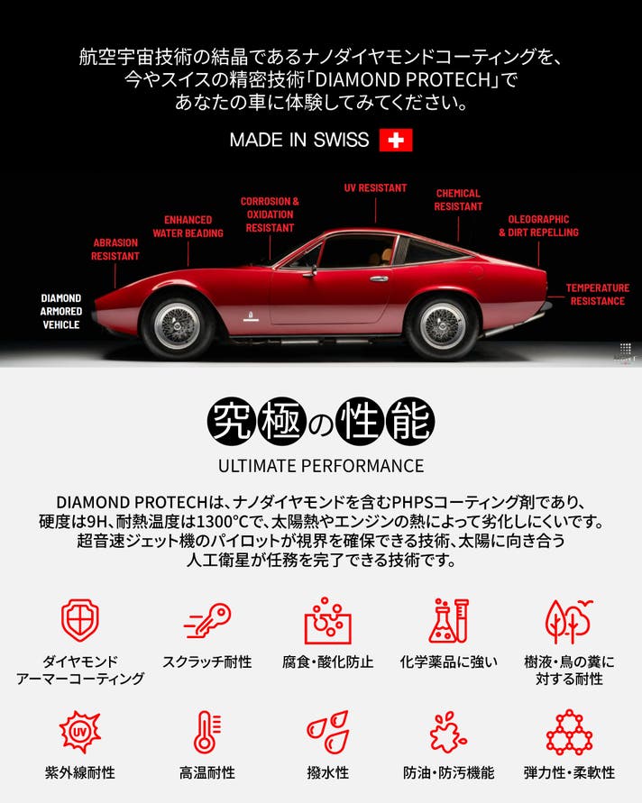 - 愛車をいつまでも美しく。汚れや小キズから塗装を守り、艶も撥水も持続するスイス製ナノダイヤの鎧