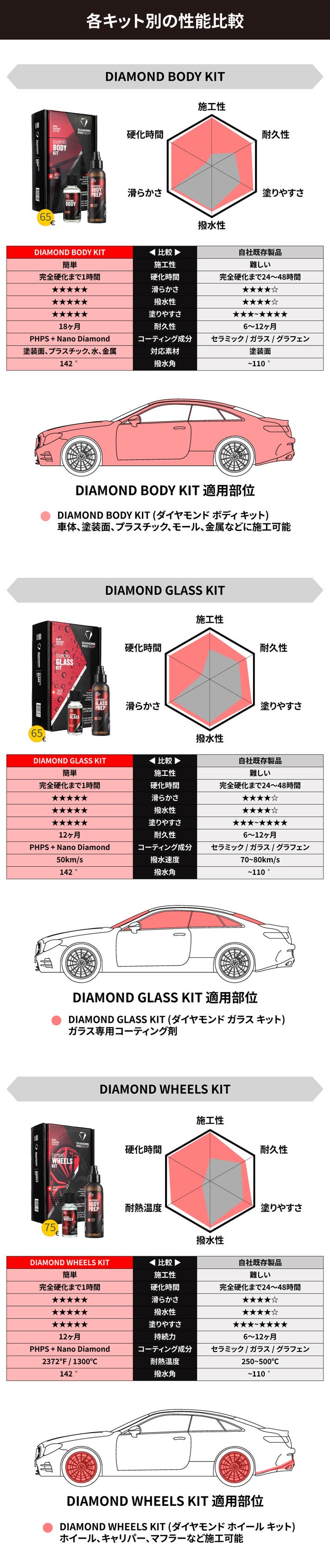- 撥水角142°、超速硬化、18ヶ月耐久。防汚・防傷性能も備えたナノダイヤ配合高機能コーティング