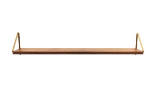 - 天然木の棚板に真鍮やステンレス無垢の金具を用い、シンプルかつ素材の質感豊かなデザインシェルフ。