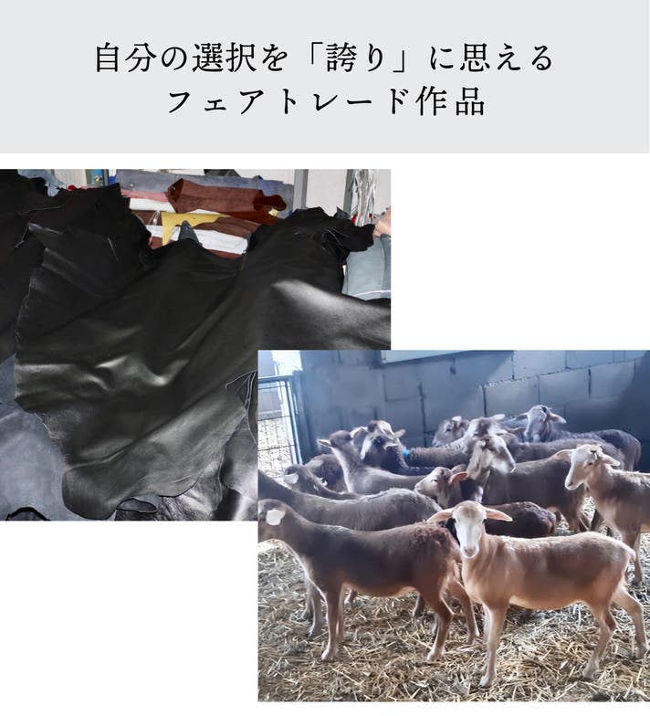 毛の生えない羊から得られるこの革は、植物タンニンでじっくり鞣し、水染めで透明感のある艶を引き出します。