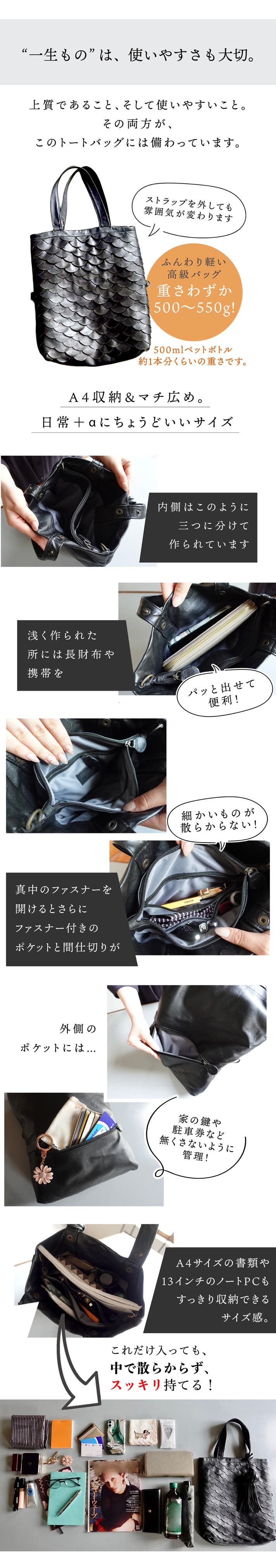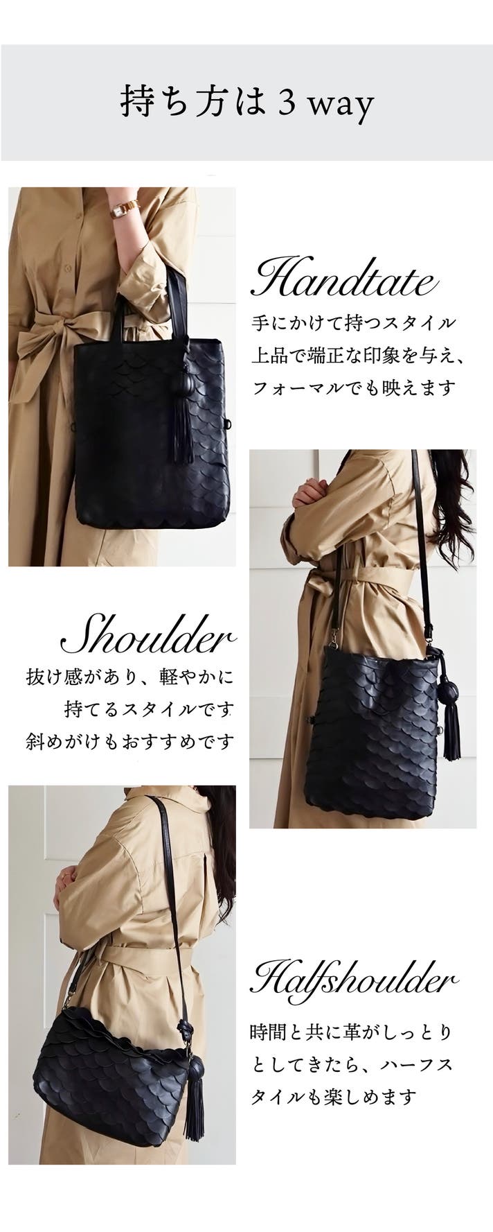 - 【使い込むほど美しい】幻の羊革「エスカーラ」を使用。柔らかく、ふんわり軽い3wayトートバッグ