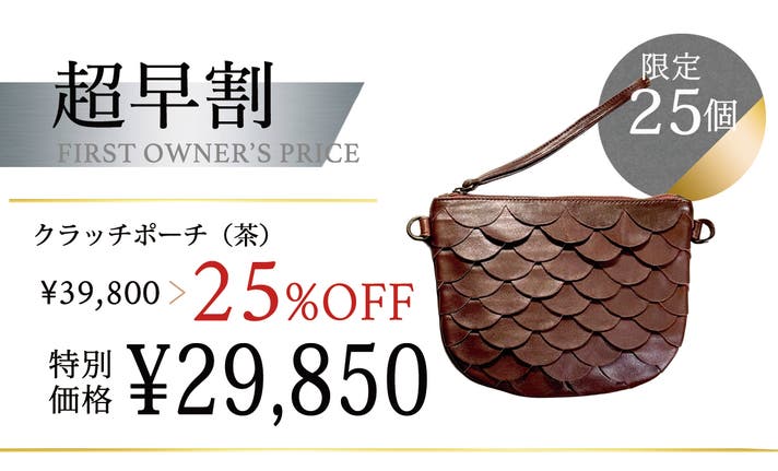 【超早割25%OFF|限定25個】幻の革を育むクラッチポーチ(茶)