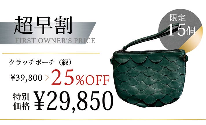 【超早割25%OFF|限定25個】幻の革を育むクラッチポーチ(緑)
