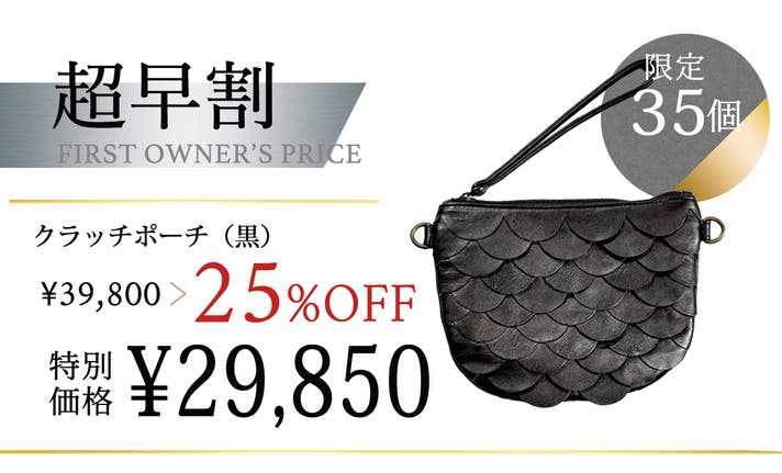 【超早割25%OFF|限定25個】幻の革を育むクラッチポーチ(黒)