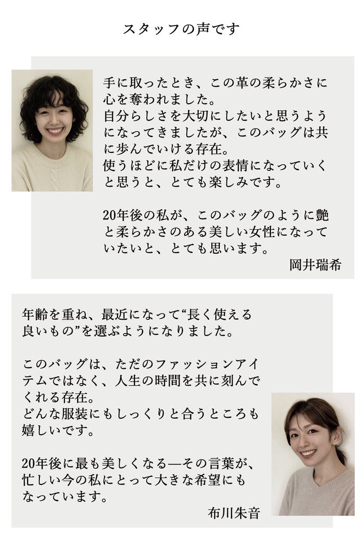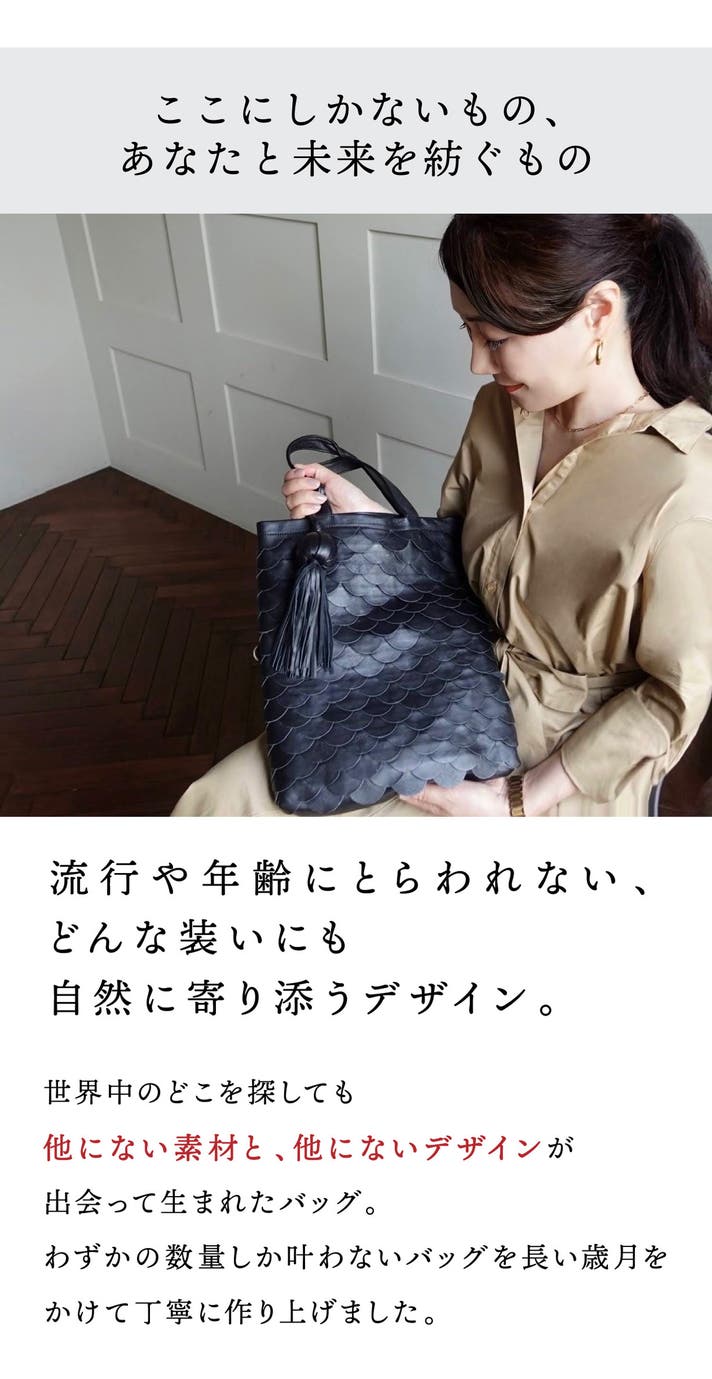 だからこそ、このバッグには、手のぬくもりと、時を超えて輝き続ける静かな力が宿るのです。