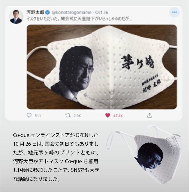 河野大臣がアドマスクCo-que を国会で着用してSNSでも話題になりました。