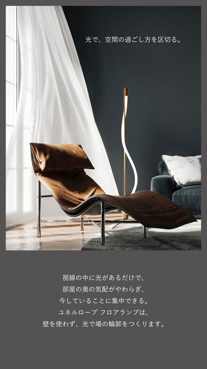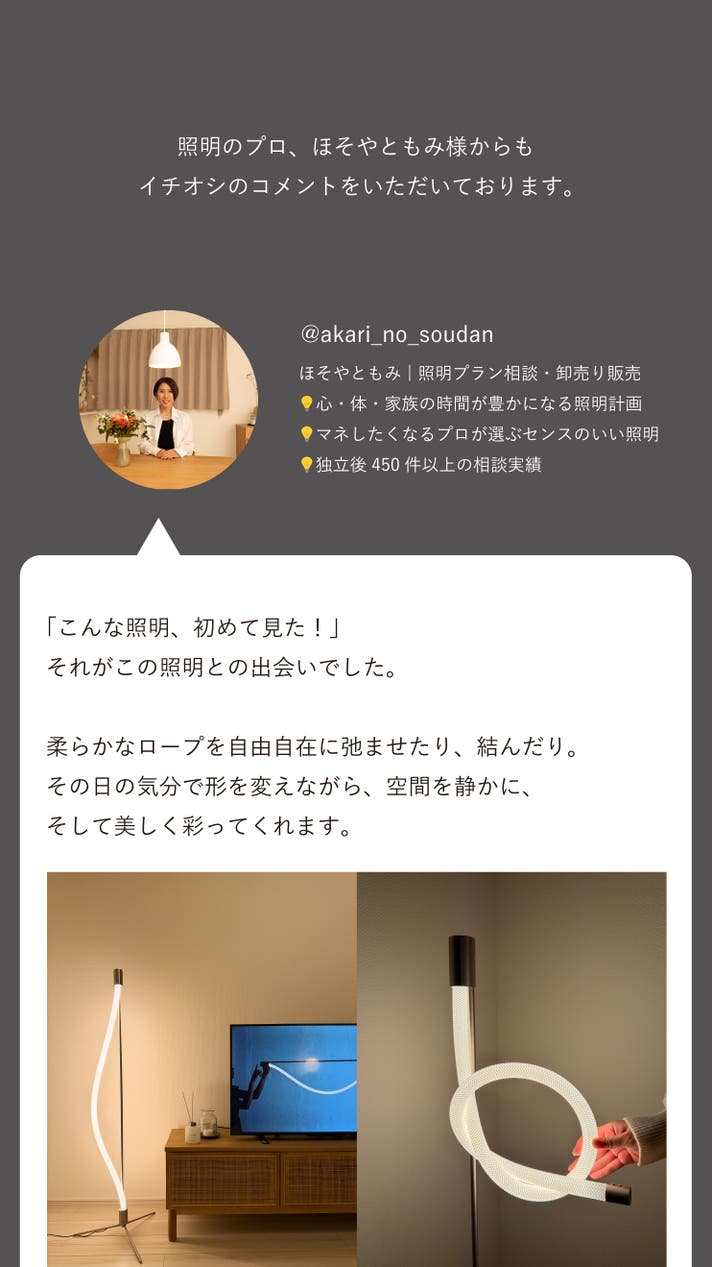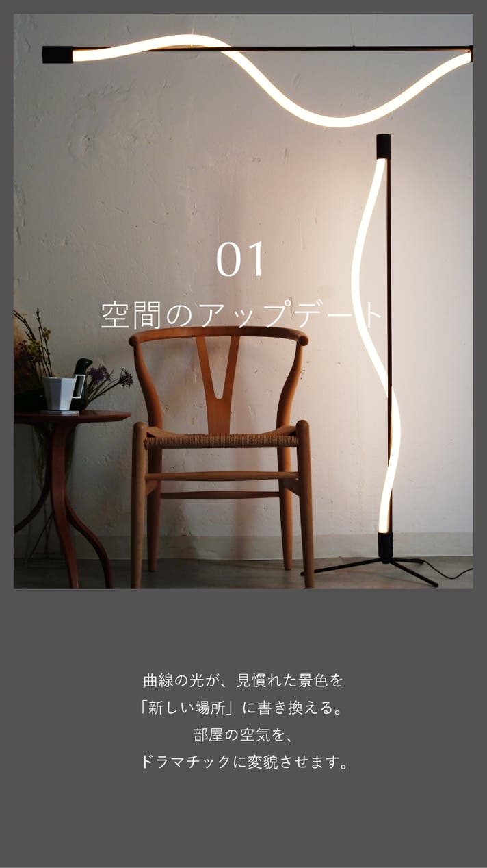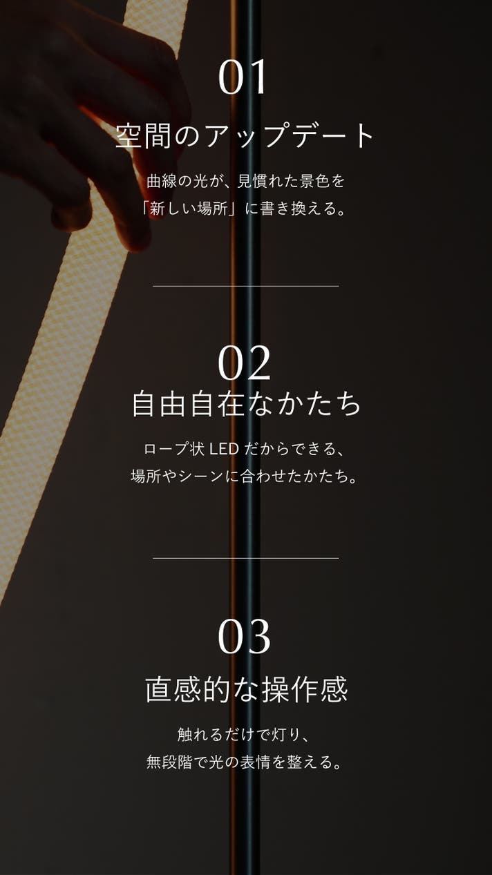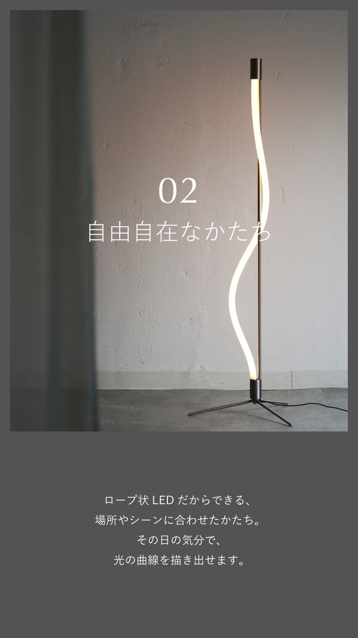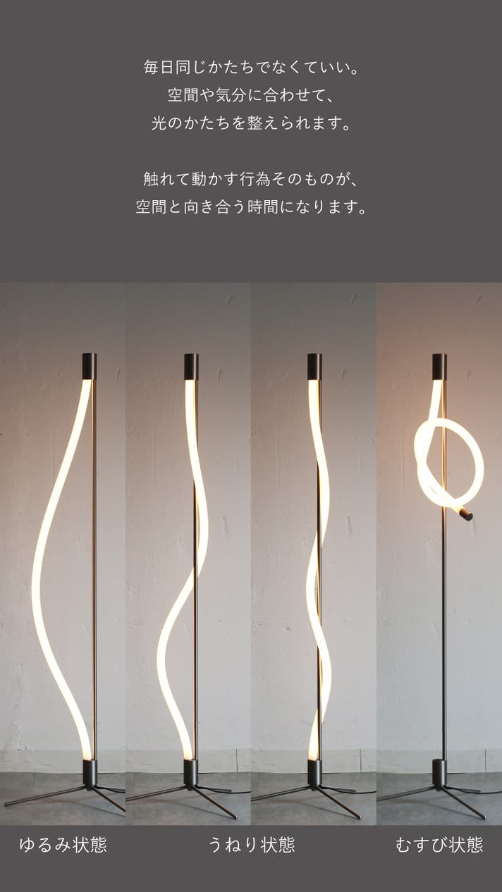 - 曲がる・結べる、ロープ状LEDの構造を、フロアランプに落とし込む新たな試み