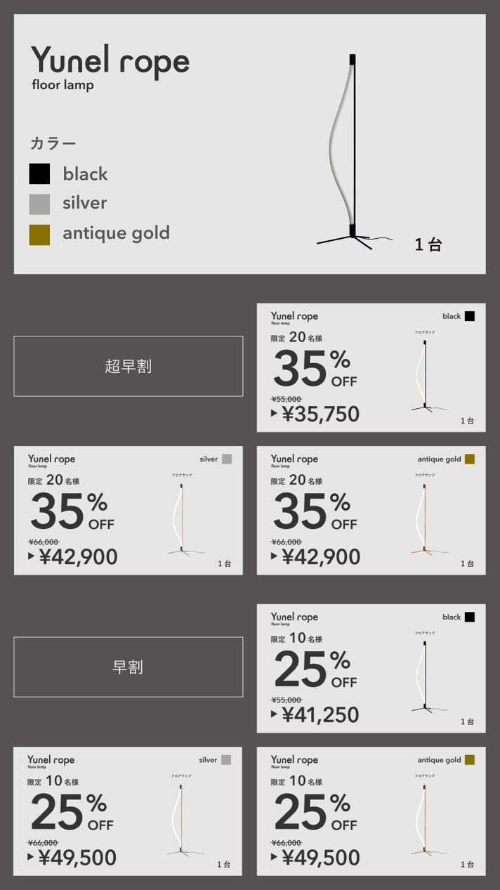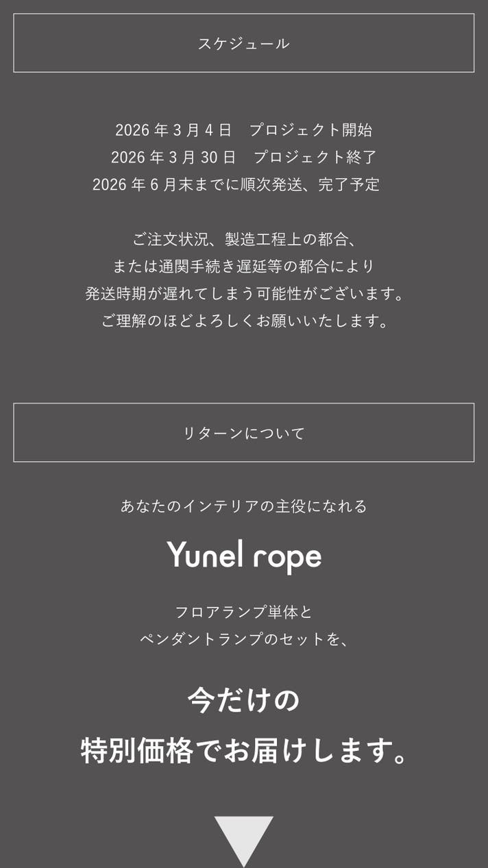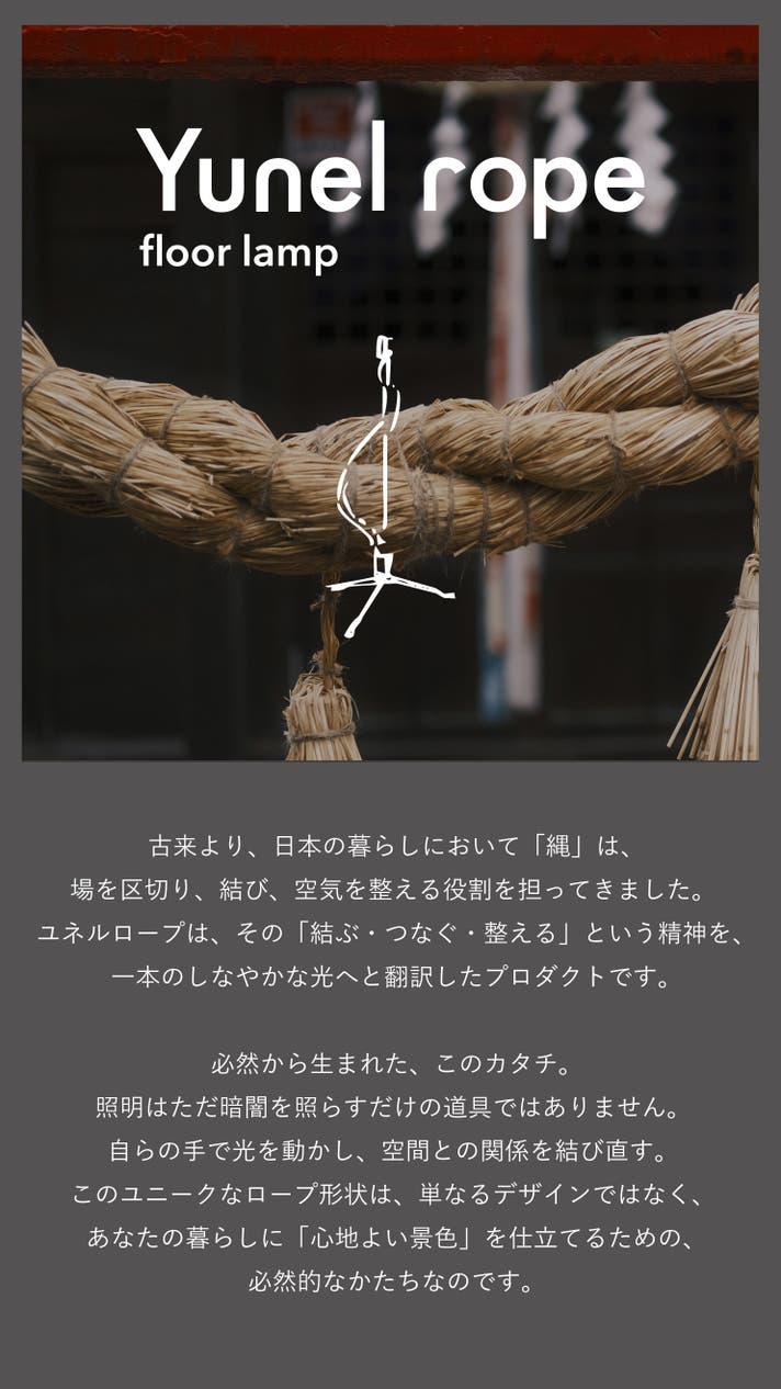 「Makuake(マクアケ)」は、実行者の想いを応援購入によって実現するアタラシイものやサービスのプラットフォームです。このページは、 プロダクトカテゴリの 「自然な光を自在に操る。LED内蔵ロープ型フロアランプ|yunel rope」プロジェクト詳細ページです。