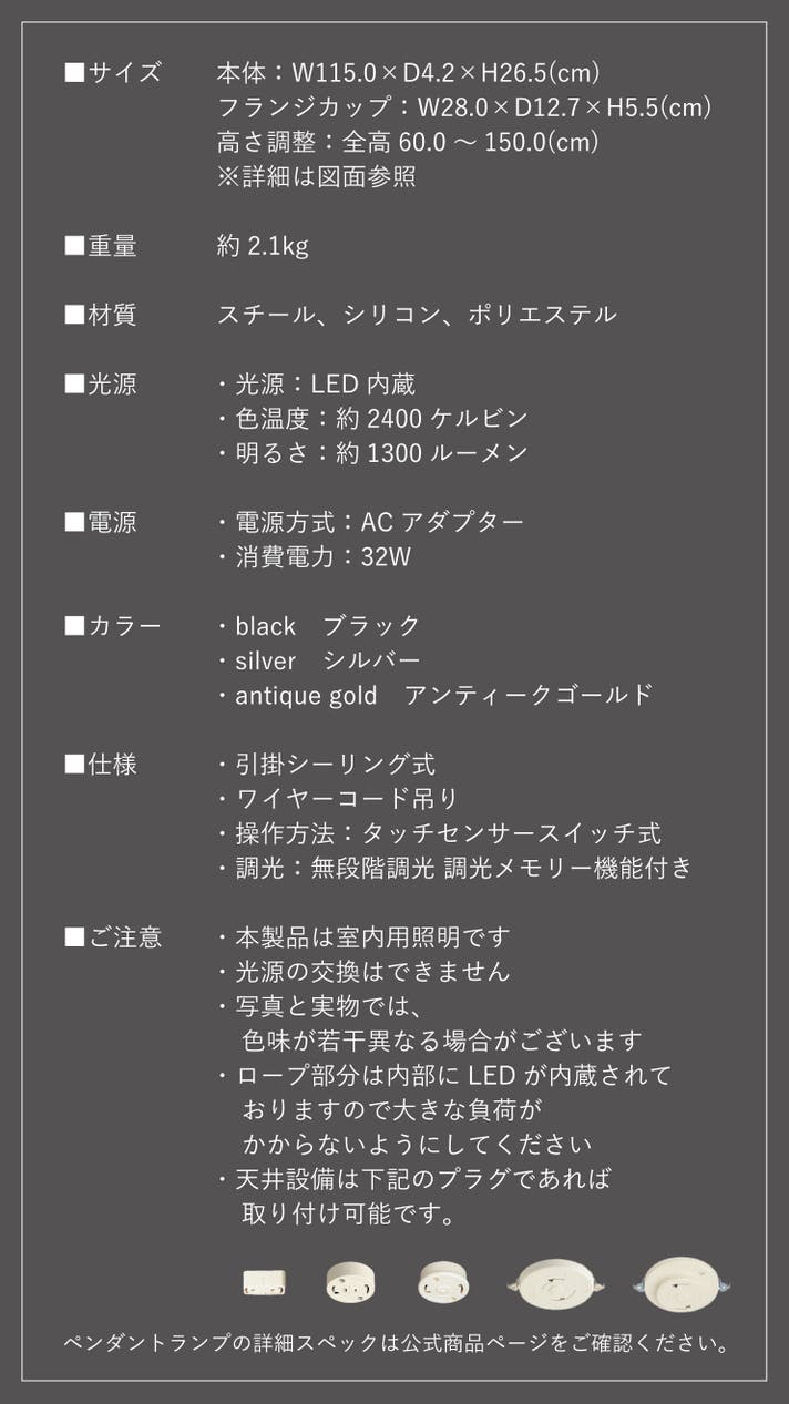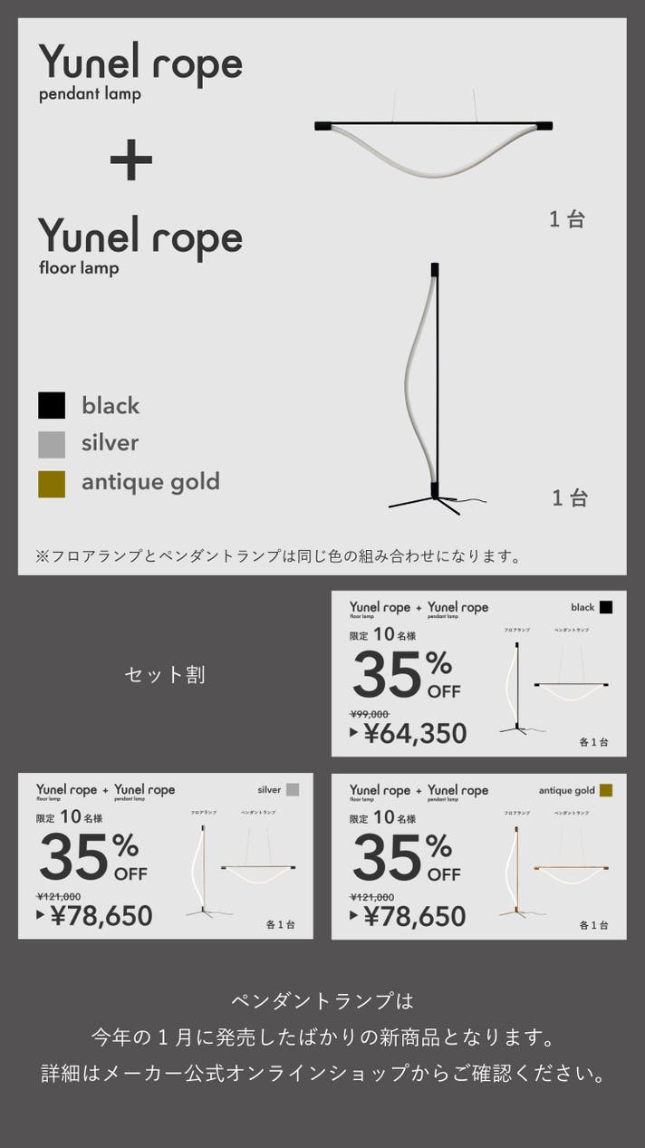 【セット割35%OFF】ユネルロープ フロアとペンダント シルバー 各1台ずつ