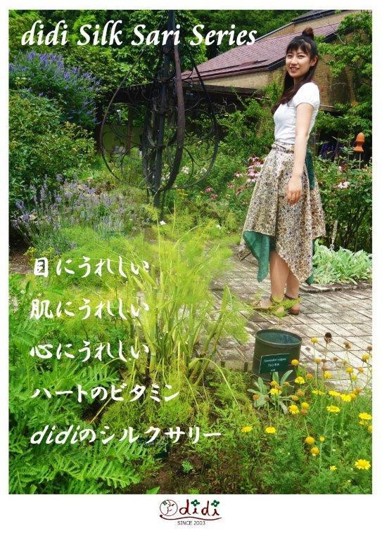 didiと提携しているネパールの工場では、ビンテージ、S級と呼ばれる品質の高いシルクサリーを、伝統的で気品あふれる色・柄の反物として、日本の着物と同じようにリメイクしています。これまで、didiではシルクサリーをリメイクした両面使える巻きスカート、パンツ、ショールなど様々なプロダクトを生み出してきました。