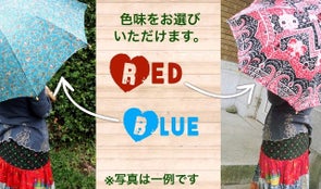 傘生地のカラーは、赤系と青系の2パターンからお選びいただけます(写真は一例です)。柄はお任せください。