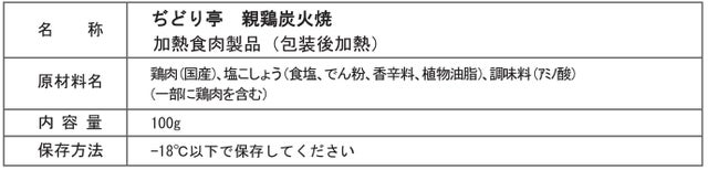 ・親鶏炭火焼100g :一部に鶏肉を含む