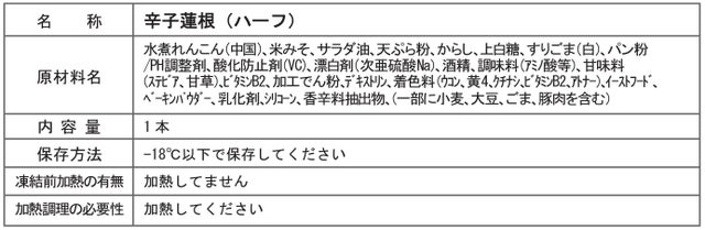・辛子蓮根(ハーフ) :一部に小麦・大豆・ごま・豚肉を含む
