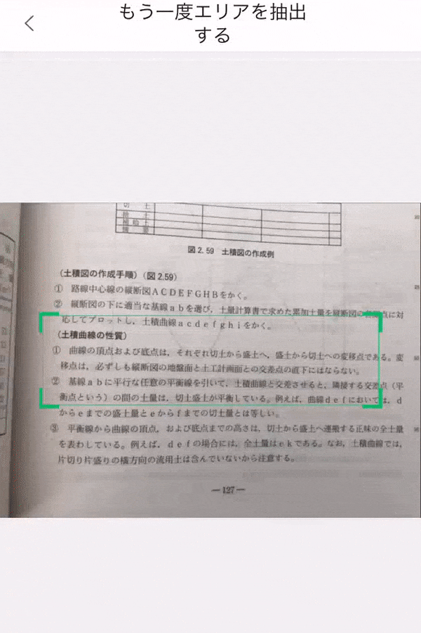 印字された文字を撮影した画像の中から読み取りたい範囲を選択し、電子テキスト化しています