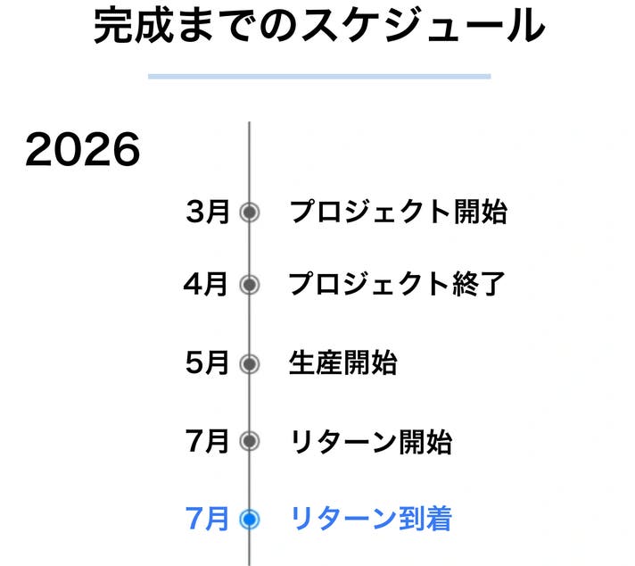 皆様のご応援購入により量産効率が向上した場合、正規販売価格が販売予定価格より下がる可能性もございます。