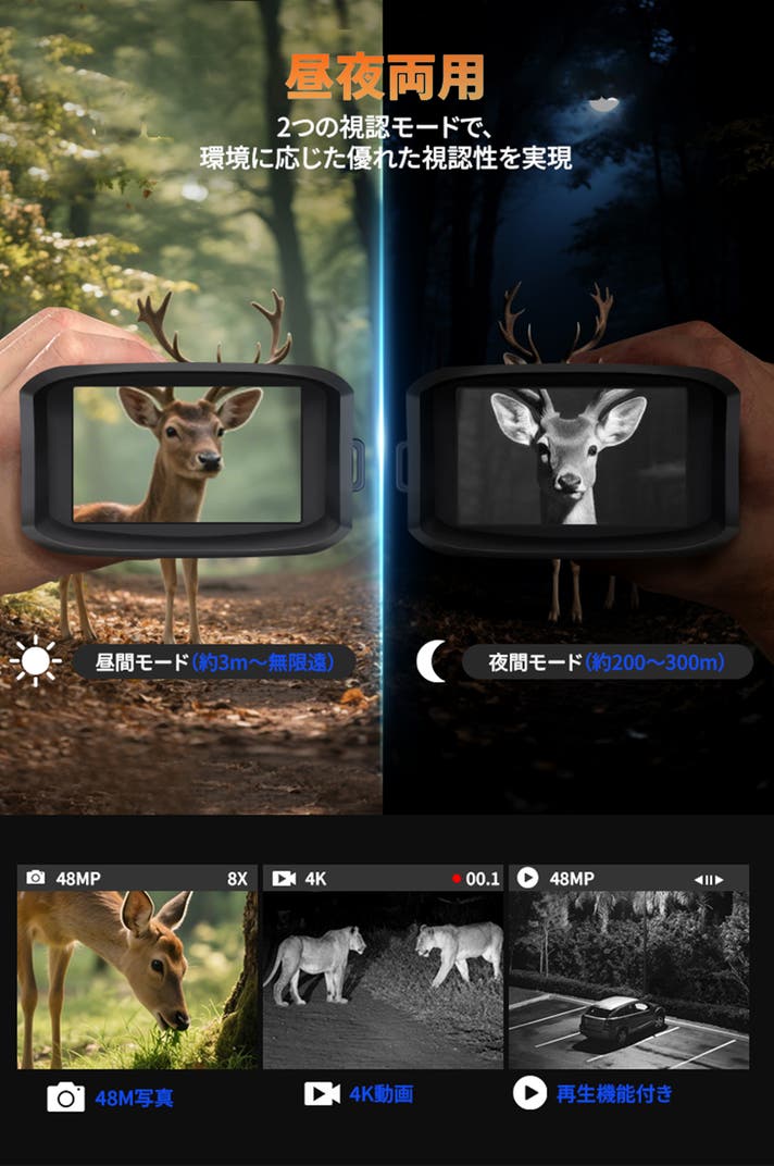 - 【4K動画撮影・48MP写真対応】高精細デジタル双眼鏡モデル、昼夜問わず鮮明に記録可能