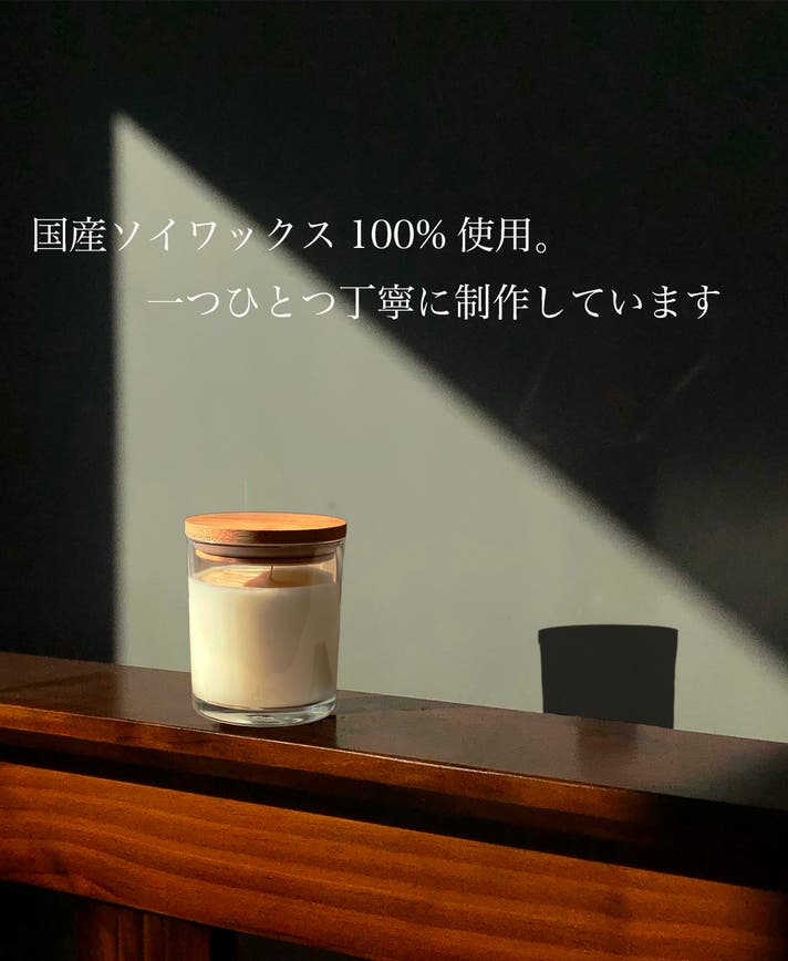 忙しさに追われる現代では、ふと立ち止まり、自分を労わる余白が欠けがちです。キャンドルの柔らかな灯りと、深呼吸したくなるような香りが、そのための小さなきっかけになりますように。素材はソイワックス100%で、一つひとつ丁寧に制作しています。