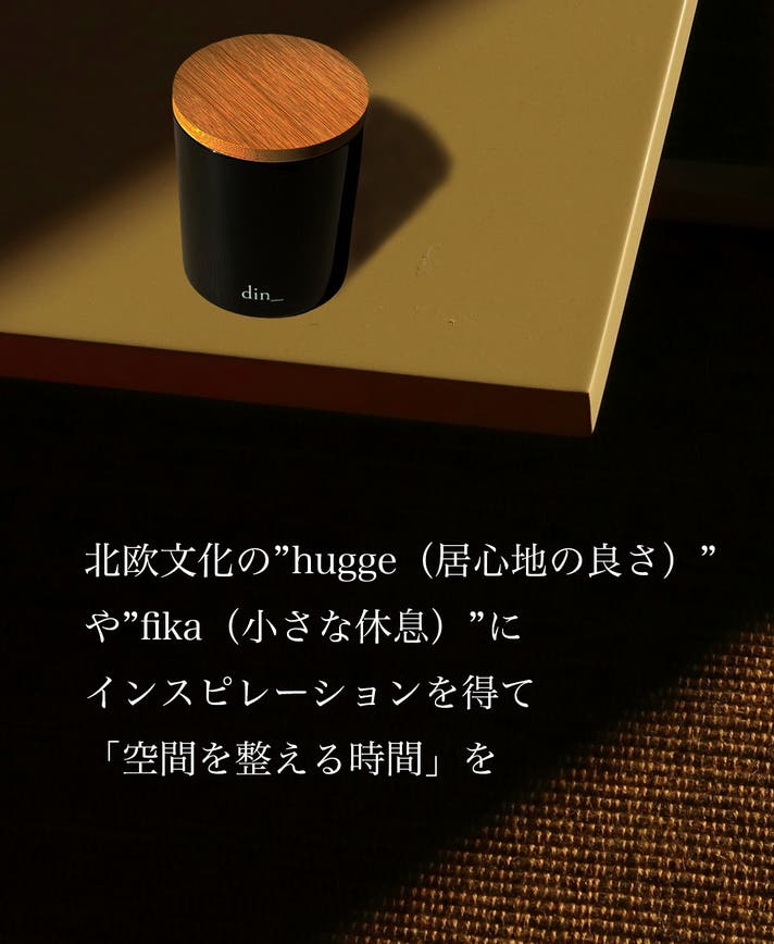 ”din" はスウェーデン語で「あなたの」という意味。 ”_(アンダーバー)"は、使う人が自由に埋められる「余白」や「余韻」を表現しています。「あなたの時間を完成させる灯り」という想いを込めて命名しました