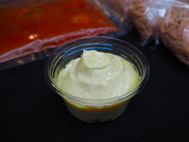 トマト、キャベツ、ほうれん草、ゆで卵、これらのトッピングに加え、ピーナツ風味を加えた自家製「ピーナツマヨネーズ」は、コクとまろやかさをプラスしてくれます。