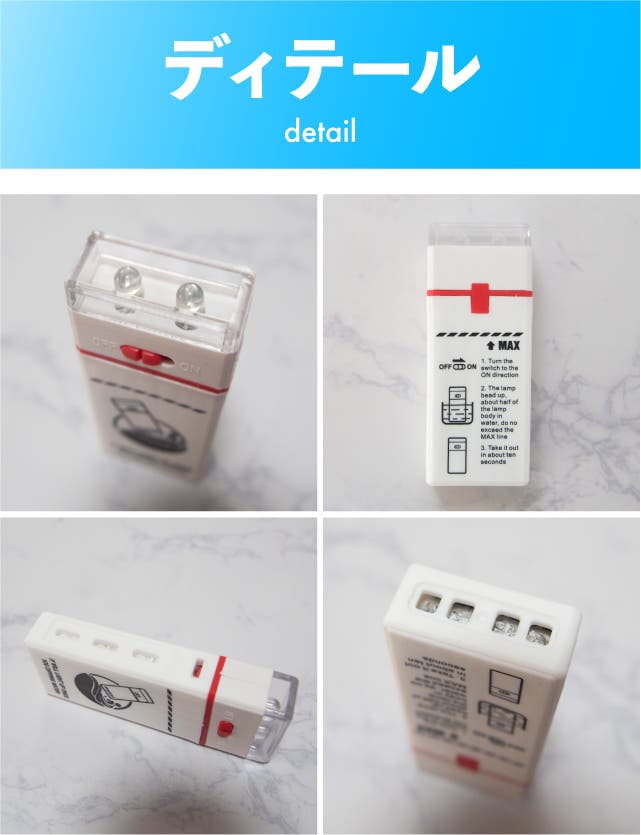 ※本製品は、水分を利用したマグネシウム-空気電池の原理で点灯します。 雨水や雪解け水などの「一般的な水分」でも点灯する可能性がありますが、 泥水・ジュース・体液など不純物を多く含む液体は、動作が不安定になる場合があります。