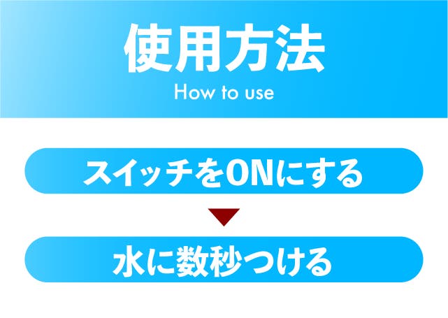 電解液として使用するのは塩水。廃棄の時に環境に負荷がかかりにくいことも、ディップライトの特徴です。※ディップライトを漬ける水分に塩分が含まれていなくても問題ありません。