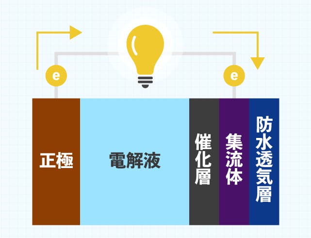 このライトは「水で発電する一次電池」です。アルミニウムを負極、空気中の酸素を正極に使い、塩水溶液を電解液として反応させることで電気を生み出します。