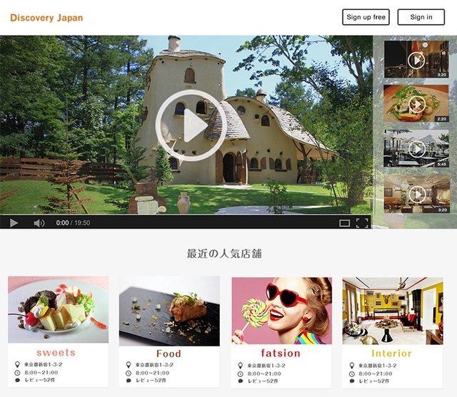 さらに、「DISCOVERY JAPAN」では、全てのお店を動画で紹介しているので、まるでテレビを見るように楽しんで使うことができます。