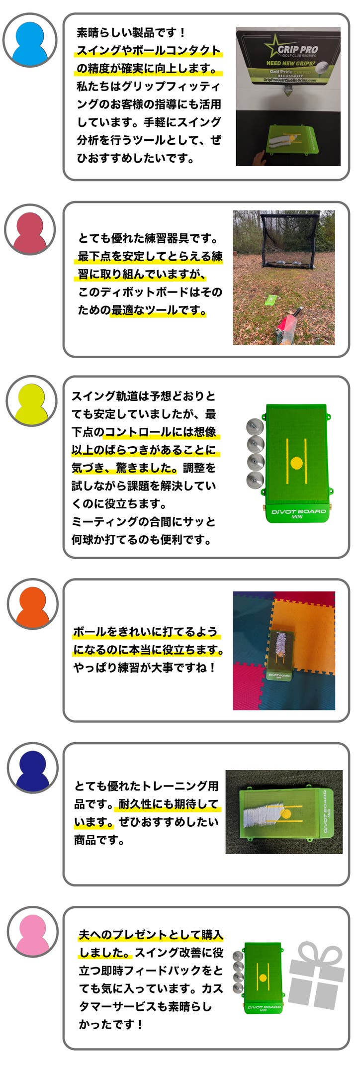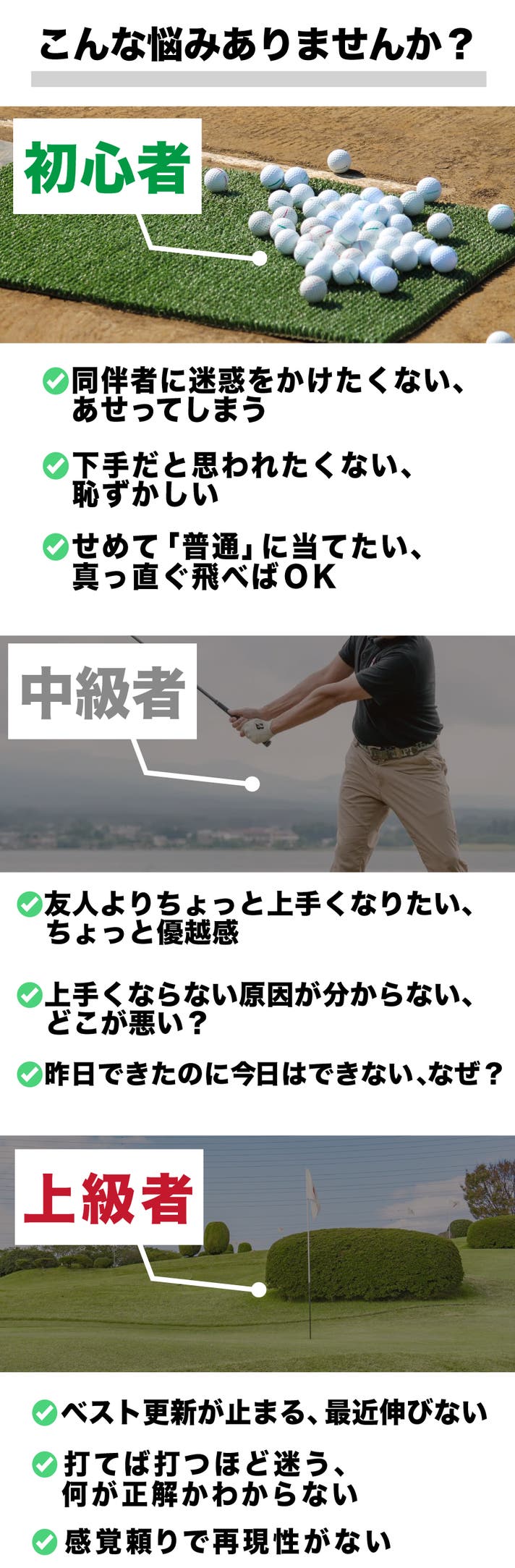 - 基礎づくりから微調整まで対応。レベルを問わず、スイングを整えたいゴルファーに最適。