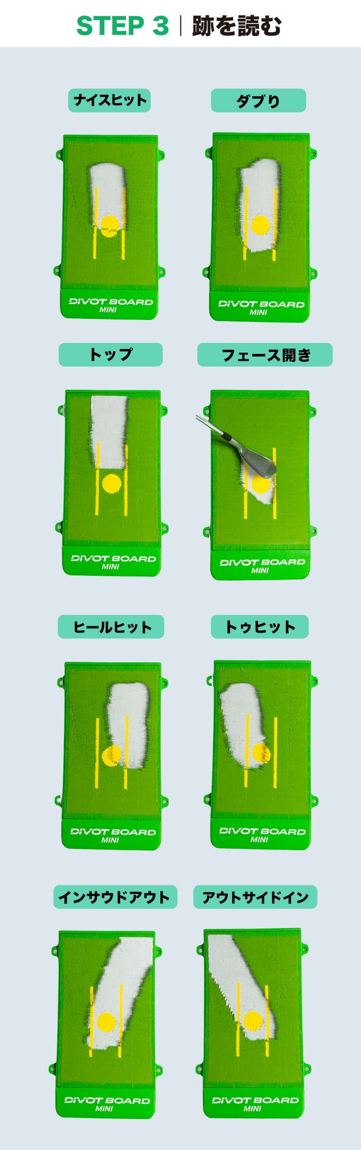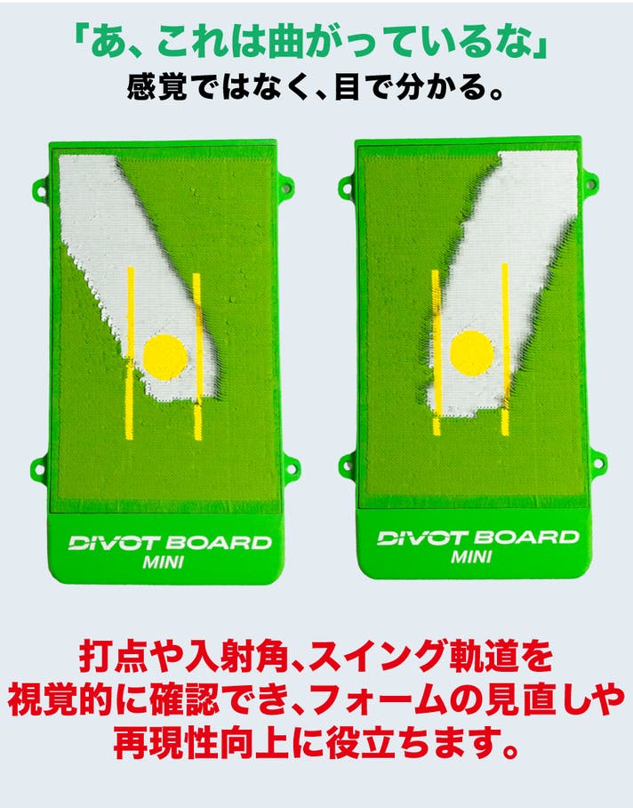 - 振った後の「跡」が見える!打点や入射角、スイングの傾向がひと目で分かるから修正が早い。