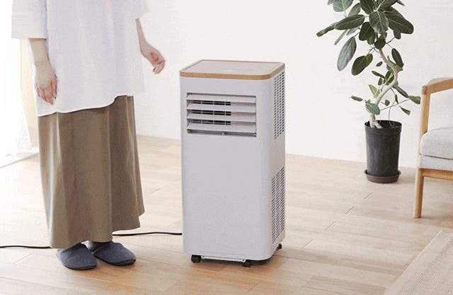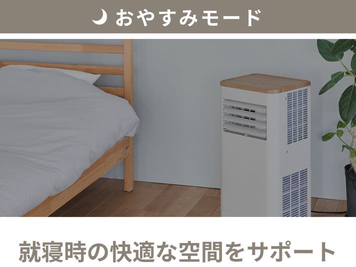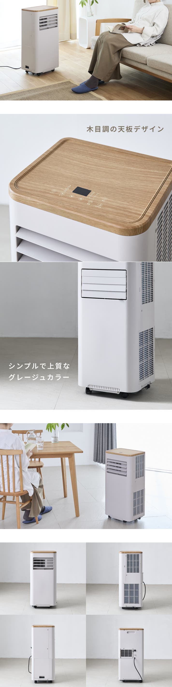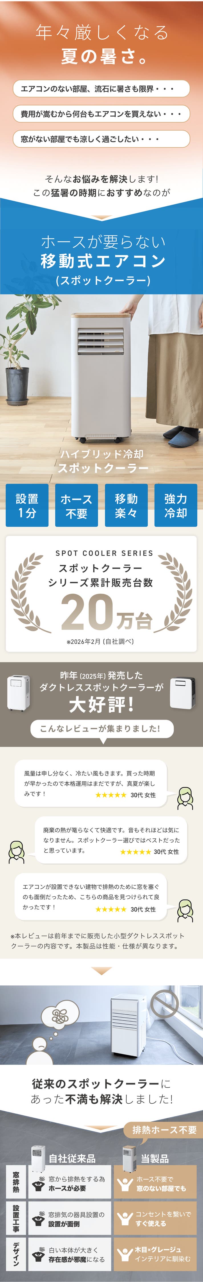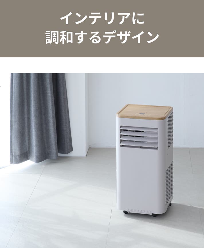 落ち着いたグレージュカラーがリビングなどのお部屋にも自然に溶け込み、無機質になりがちなスポットクーラーの印象を一新します。