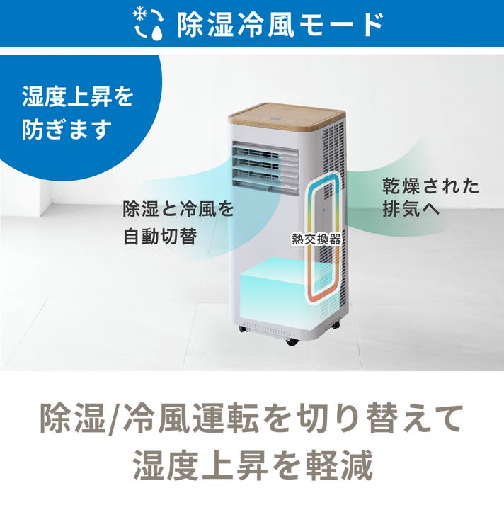 動作時に発生する湿気を含んだ排気によって周囲の湿度が上がりすぎないように、冷風運転と除湿運転を自動で切り替える便利なモード。