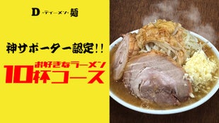 ・D麺の未来を全力で応援してくださる方向けのコース。お好きなラーメン10杯楽しめます。あなたの熱い応援、お待ちしております!