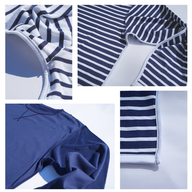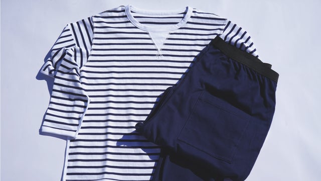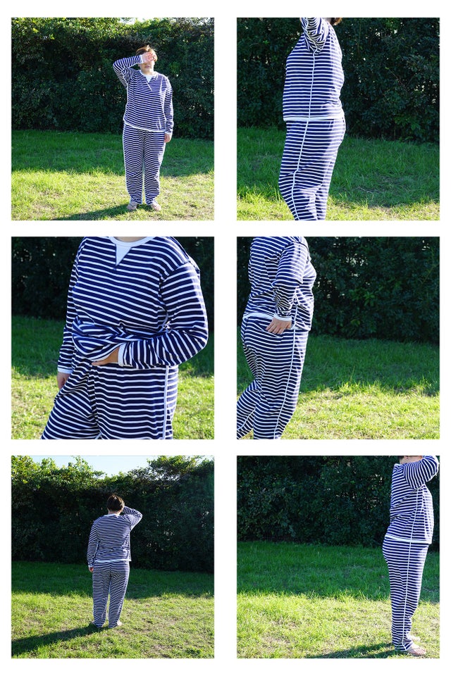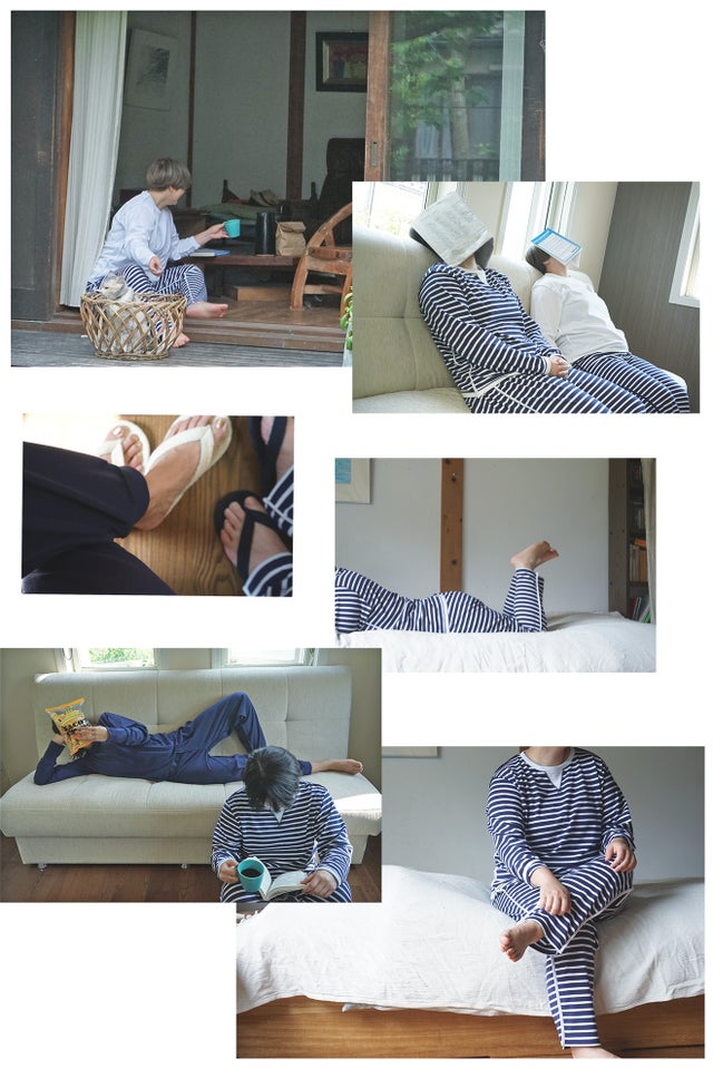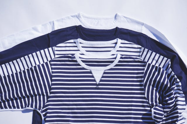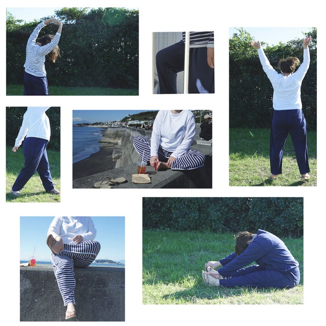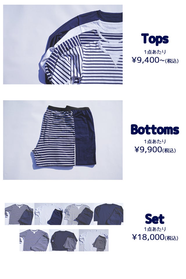 今回発売するのは、セットアップでも着られるリラックスウェアです。ネイビー・ホワイト・マリンボーダーのカラー展開は流行に関係なく、家でも外でも心地よく、長く着続けられます。