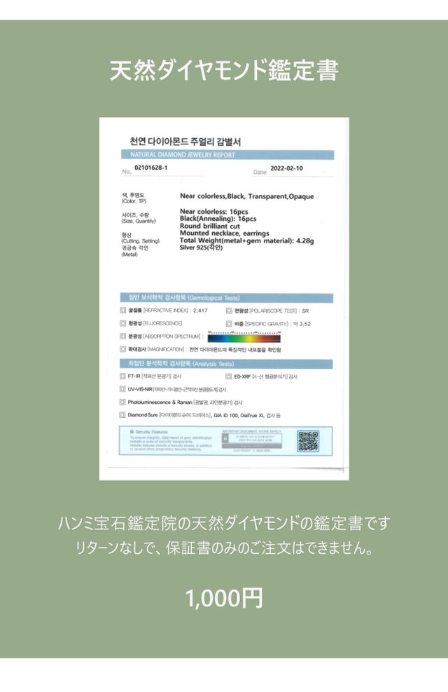 ※ピアス、ネックレスのリターン購入の方限定となります。鑑定書のみのご購入は出来かねます。