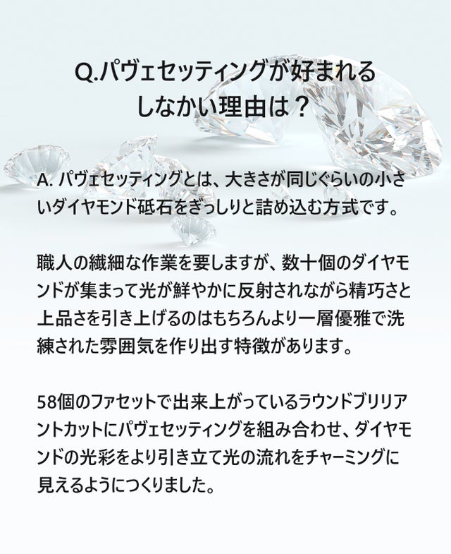 ダイヤモンドの輝きを最大化したパヴェセッティング