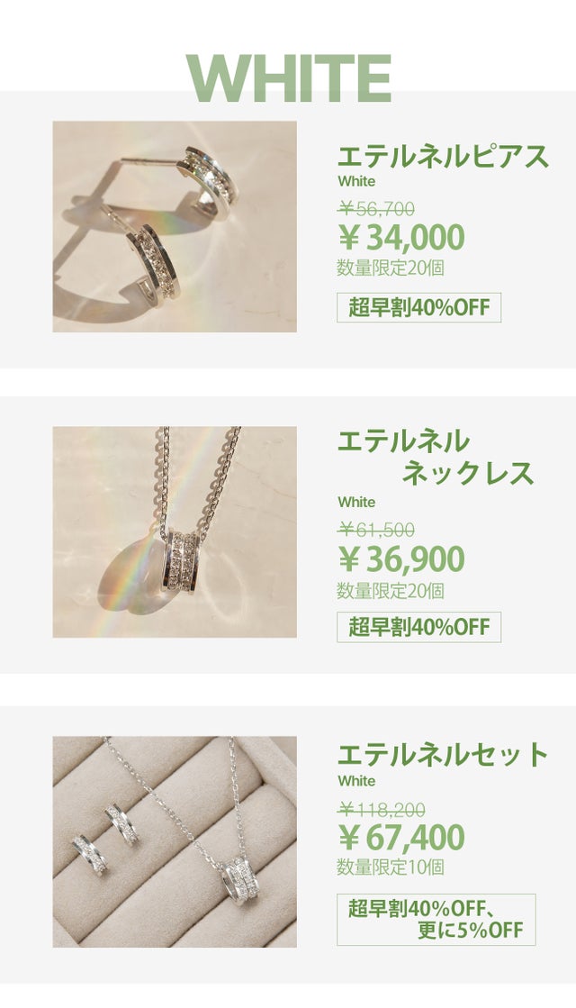 「MAKUAKE定価」ホワイト ネックレス・ピアスセット